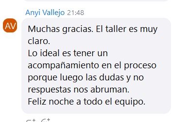 El horario de las asesorías serán a las 8 pm (hora Perú), y por el grupo de la comunidad, te estaré avisando el día de la sesión.